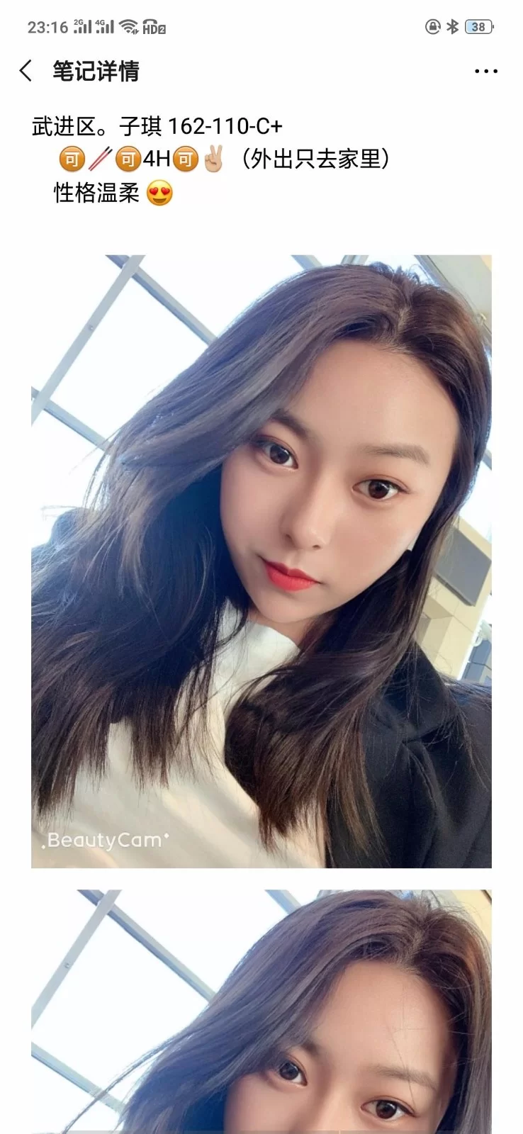 服务没话说,档期安排的很满,等前面老哥走了才轮到我,我走后等电梯的过程中,下一位就来了。妹子提供位置,遥控上楼。服务特别卖力,XT得至少5分钟,然后后背漫游,到最后整个后背没有一处肌肤是干的,至少弄了10分钟,然后kj,不知哪里练得技术,舌头灵活的一笔,又小又有力,这一项又至少给做了10分钟。堪称敬业的典范。年龄比图片中看上去更小,皮肤保养得很好,非常细腻。鲍鱼小巧,紧致,没有任何味道。这服务,这价格,真是物超所值